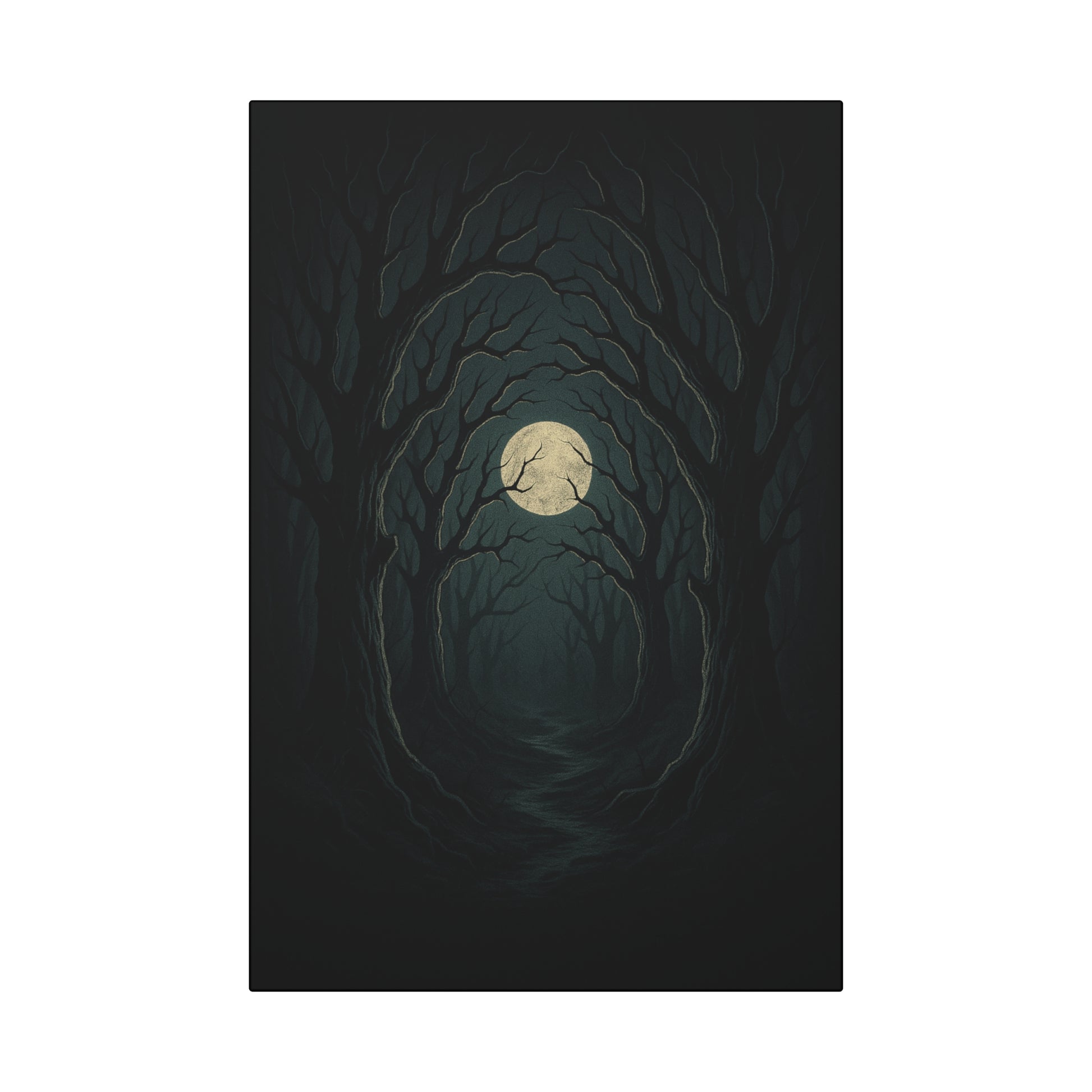 Printed on high-quality canvas with rich, deep tones, this artwork captures every eerie detail, from the tangled branches forming a natural archway to the moonlight casting a spectral glow. It’s a striking statement piece for living rooms, bedrooms, or creative spaces, adding just the right amount of gothic charm.